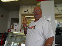| Grandpa enjoying his double scoop ice cream cone. |