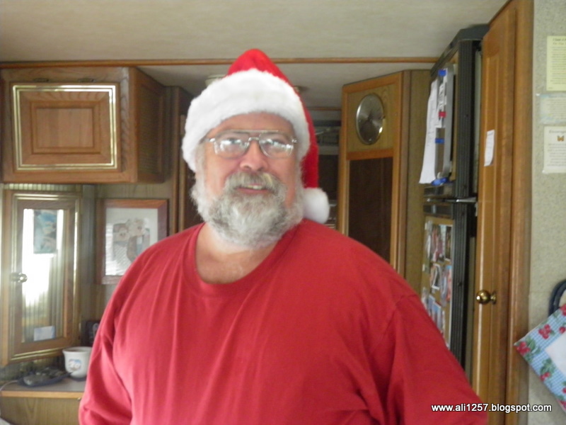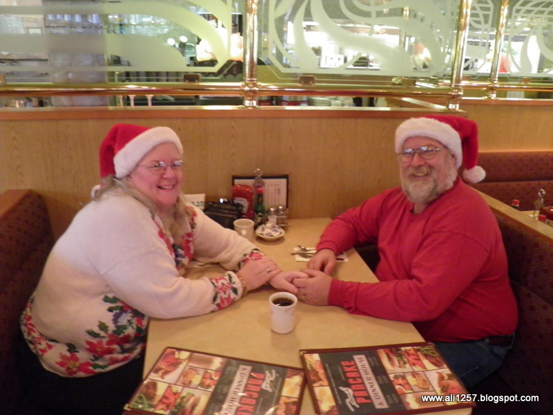 | Time for our Christmas Dinner. It was fun to listen as other customers walked past our table and said things like “Look Santa & Mrs. Claus.” It was a relaxing meal but definitely not the same as sharing Christmas Dinner with our family or friends. |
