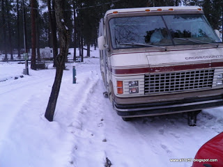 | And here we are parked for the night. Ron got the motor home level and plugged in. |