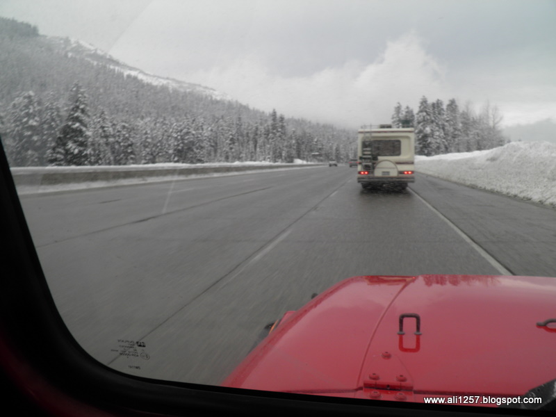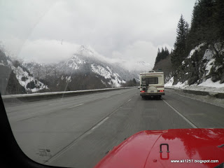 | Climbing the summit at Snoqualmie. The motor home stayed at a steady 35 mph. |