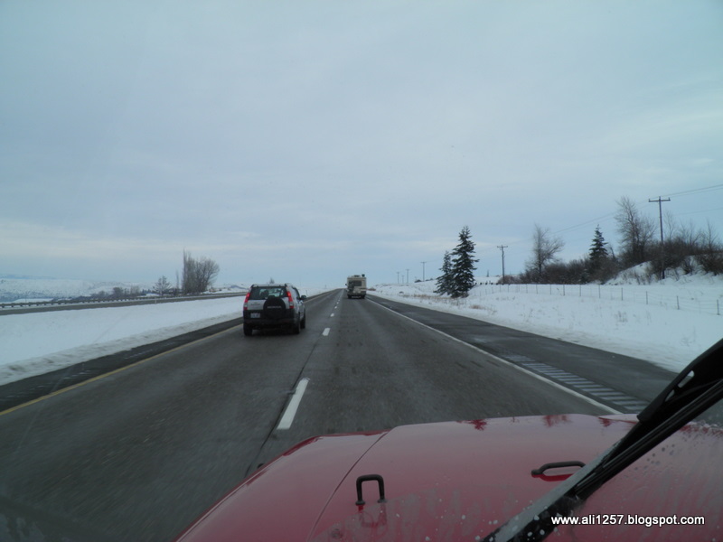 | This was in Moses Lake where we stopped for the night. Lots of pretty snow on the ground but none on the roads. |