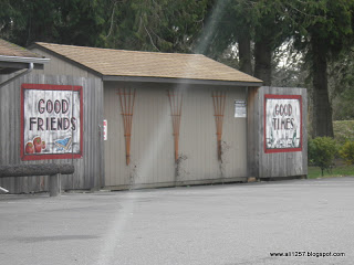 | First stop was in the parking lot of this little restaurant. The signs on the right of the building say “Good Friends and Good Times.” They were not open but it looked like the kind of cafe we would like to eat at. Maybe another time. |