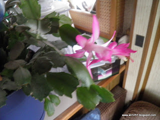 | My Christmas Cactus opened another bloom. There are three more buds yet to open. A note about this plant. It started with a cutting from a friend who got her cutting from Ron’s Grandma Workentin in the mid ’70’s. I think it is pretty cool to have a plant that came from Ron’s Grandma. |