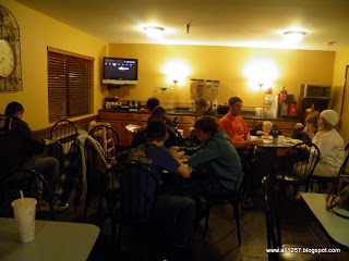 During the JV game Brandon got a call from the AD (Athletic Director) that the roads between Post Falls and Lewiston were closed due to snow, drifting snow, and high winds. So the team was staying another night. While driving home we got a text from Danalyn texted us that the boys were pooling their money to buy pizza because some of the boys had no money left (they thought they were going home after the JV game).