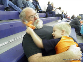 | Christopher & Grandpa sharing a hug during the JV game. |