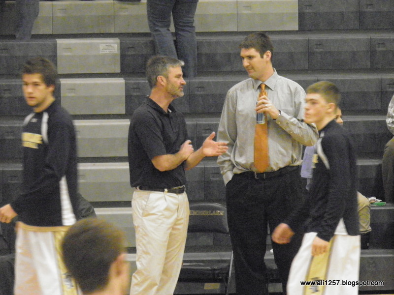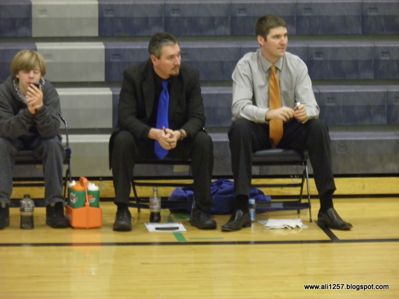 | Before the game they look so relaxed. The manager is on the left, Travis, the JV coach is in the middle, Brandon on the right. Looks pretty sharp in that tie, if I say so myself. |