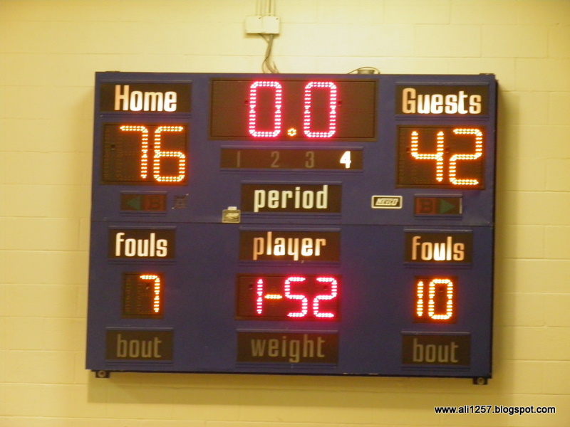 | The score at the end of the game. The Maniacs were the guests and this looks like the fouls were pretty evenly called but in actuality we had 2x the number of fouls then the other team. It was a sad loss. |