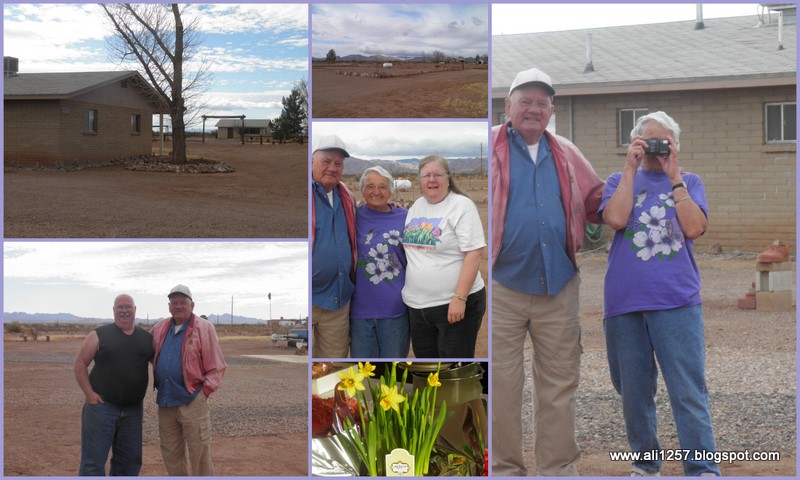 Before getting on the road we had to take some more pictures. Do you notice the one of Aunt Erma taking a picture? She is taking a picture of us as Ron was taking a picture of her and Uncle Rex. I just love the daffodils ~ Uncle Rex bought them for Aunt Erma for Valentines Day and we were able to enjoy watching them open from little buds to beautiful flowers.