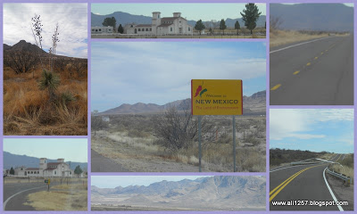 And before we knew it we were crossing into New Mexico. As you can see from the pictures we had a beautiful day for travel. The picture in the upper left corner is a type of cactus. People cut the stalk off and make walking sticks out of them.