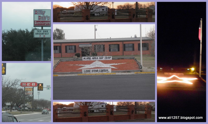Once hooked up we headed west on Highway 90. We passed “Billy Bobs” which we have heard is a great place to eat. We have put that on our list of “must do’s” to accomplish during our stay here. We pulled into Lone Star Corral at 11:50 a.m. We walked into the office and received a very warm welcome from Ed & Jeanette, the Assistant Managers. We were introduced to Bonnie, the Vice-president of the Co-op. After chatting for a few minutes Ed guided Ron into our site. I followed them in the Jeep. After chatting for a little while we made plans to meet Bonnie and her hubby, Ed (a different Ed from Ed & Jeanette) at 1:30 to go to Bill & Rosa’s for lunch.