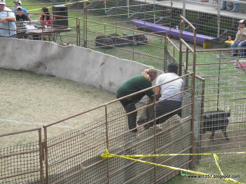 Sat next to a family that had four members of their group participating in the Catch a Wild Hog contests. The contestants (two to a team) have to corner, catch and put the hog into a burlap bag and then drag it across the line. Hope you enjoy the pictures.