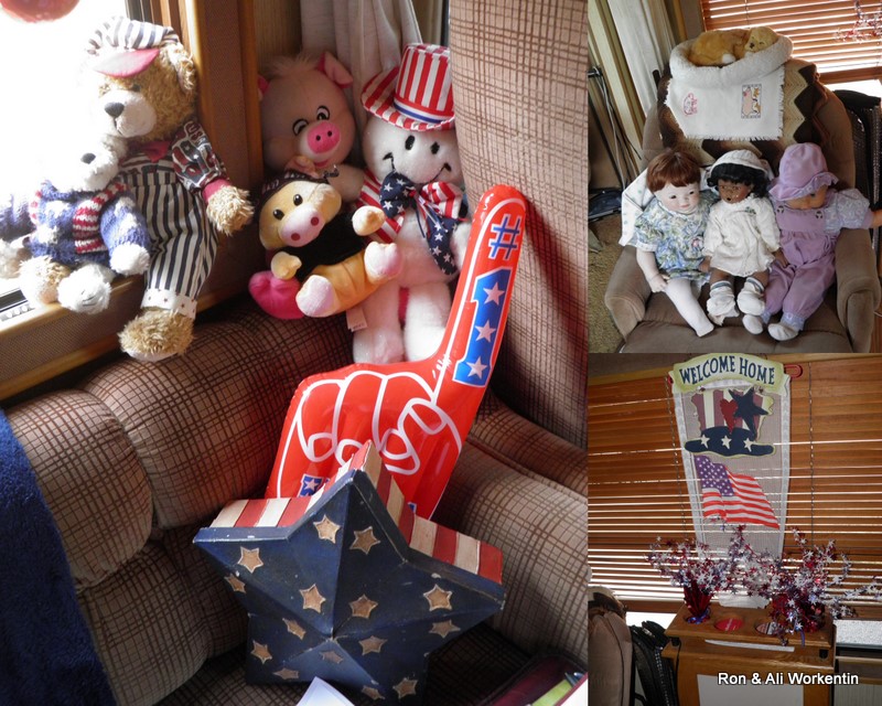 And then I did some decorating for the holiday. Love to have all my red, white & blue decorations throughout the motor home.
