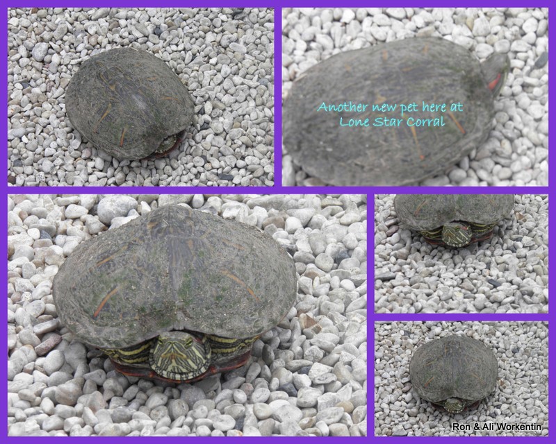 A couple of weeks ago we were driving down the road in front of park.  Ron swerved out of the way and pulled over.  Found this little guy in the middle of the road.  We  brought him back to the park to get some pictures and put him in a safe place and not the middle of the road.  That all happened at lunch time.  By the time we were done with work, our turtle friend was long gone.  Too bad, it would have been nice to have him visit for awhile.