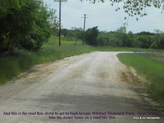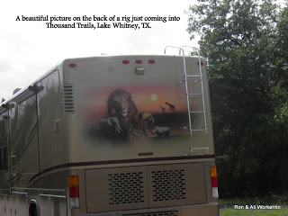 Would ask that you keep us in your prayers as we head out tomorrow morning. We will be going north, skirting Dallas/Fort Worth and into Oklahoma. Don’t know how long of a day we will put in on the road ~ it all depends on how many miles our butts can take in the chairs, the weather, the roads and life. Our first target is McAllister, OK. Will see if we get past there or not. Stay tuned for the next update in this journey we call life. Since we don’t know where we will land tomorrow night IF you need to reach us, give a shout out on the cell and we will call you when we can.