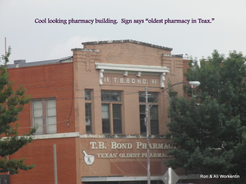 And we were off to Lake Whitney Thousand Trails in Whitney, TX for two nights – one day of sight seeing, resting and getting a little more organized and tomorrow we will be off again, heading for Oklahoma. Hope you enjoy the pictures from the last two days.