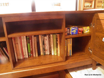 Inside cabinet: center section with my cookbooks!!!! And food storage on either side.