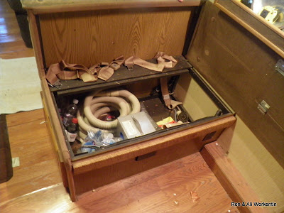 And what do we find?  Electrical box for power to the front of the motor home and the built in vacuum cleaner.  Umm, now what??????