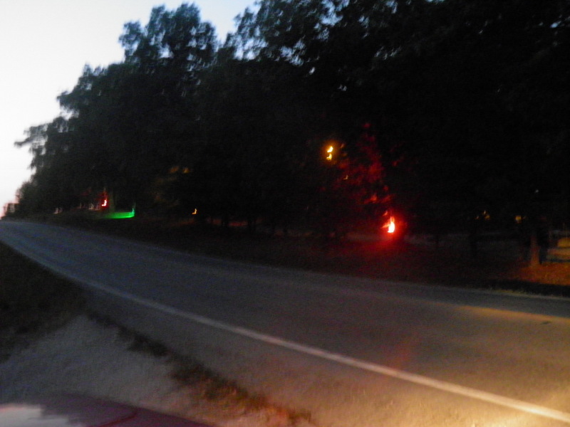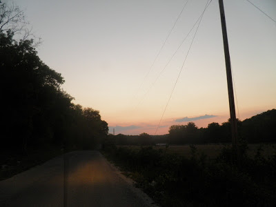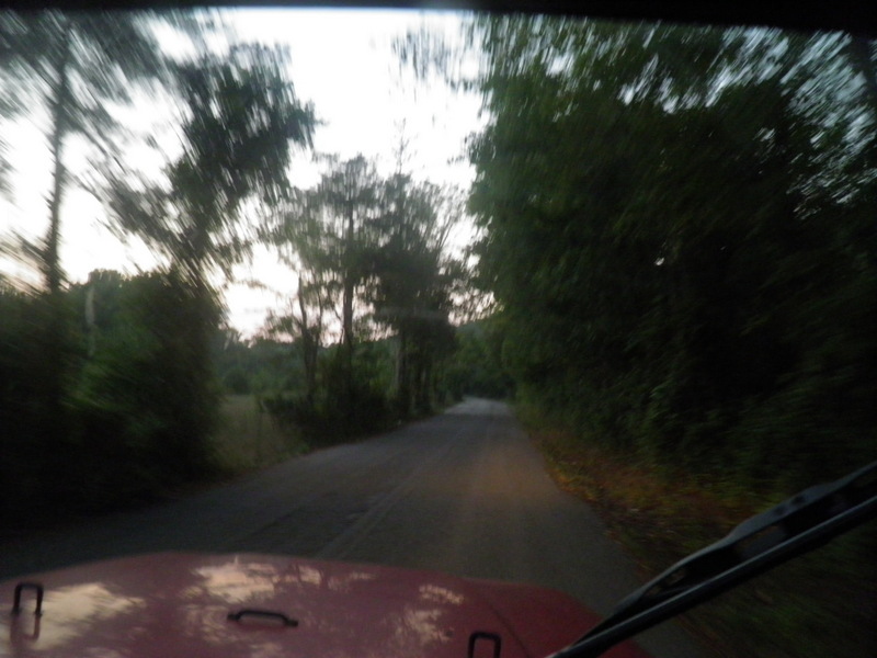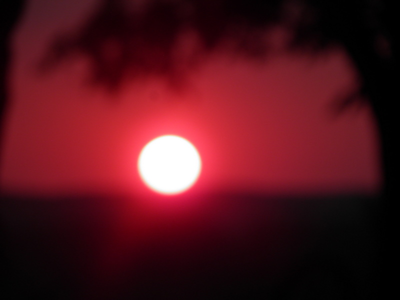 The sun going down on the horizon.  This was taken through two trees in someone’s yard that we pulled into that we thought was a road 🙂