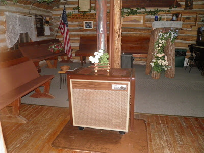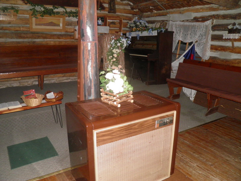 We couldn’t figure out how to turn the lights on so we were pleasantly surprised what pictures we got with the flash.  The pulpit was made from a tree stump that was cut down in 1933.