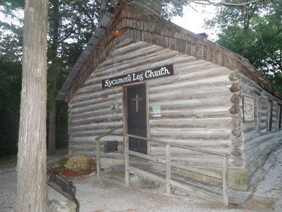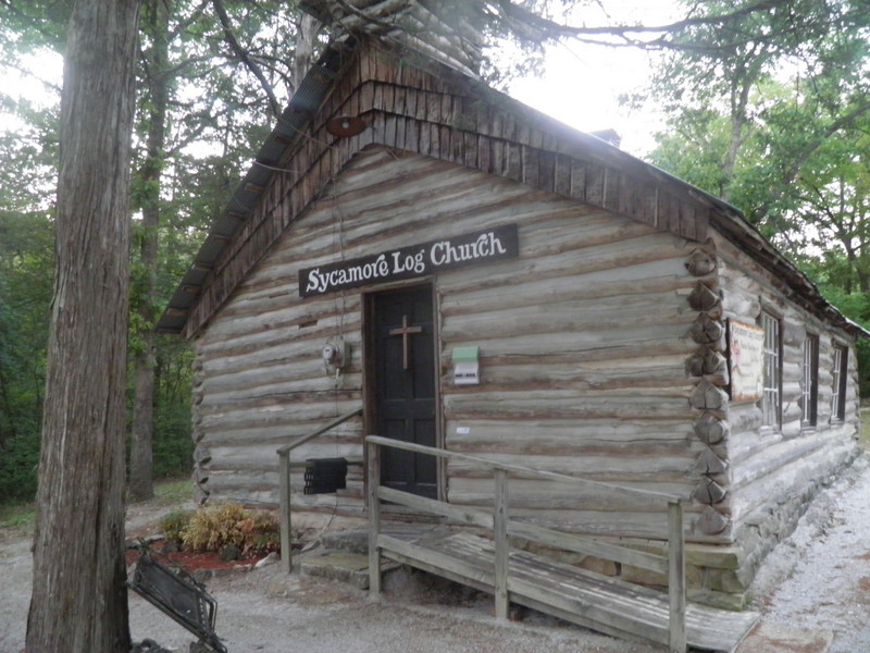 As Ron was driving I was looking/reading signs and saw this sign for Sycamore Log Church and that sounded interesting.  So off we turned and drove down just over 2 1/2 miles and this is what we found: