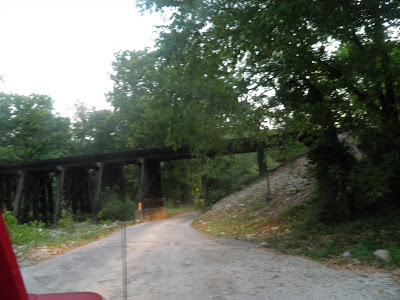 The road narrowed to less than one lane and just as we started under the tressel a car came roaring up so Ron backed up so she could get through!  So glad she didn’t hit us head on.