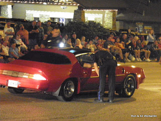 This car was stopped by the local police (they were very much present throughout the nigh) after they peeled out from a stop. Many of the parade watchers gave a resounding round of applause for the local police presence.