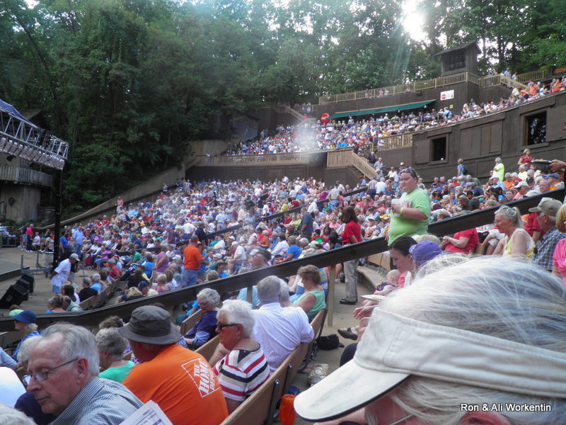 One of the gifts we have been blessed with while here in Branson are passes to Silver Dollar City. Each night after the park closes they host some type of concert or show. The end of August is there Southern Gospel Picnic and we were able to go to two shows: Jeff & Sherry Easter & the Hopper Family.