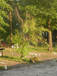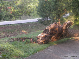 | And the tree that fell over….the couple in the rig about 15 feet from where it toppled thought it was going to come through their rig.. Fortunately no one was hurt. One 5th wheel did get a log (branch) through their roof in the bathroom. |