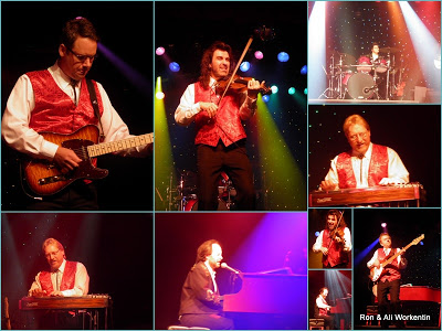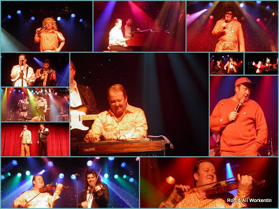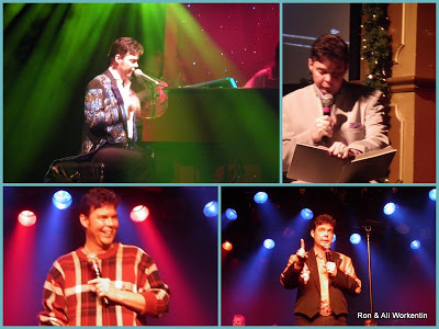 | Many faces of Michael Patrick ~ top left and top right ~~ playing the piano, reading the Christmas Story, bottom two shots – candid emcee shots |