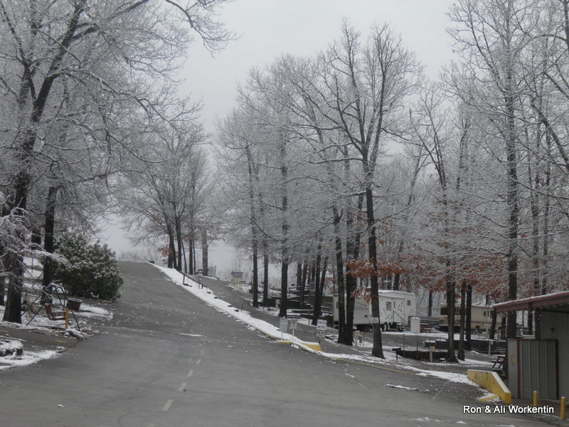 | Looking up the main road inside the campground. |
