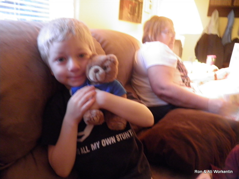 | Christopher holding his new bear and Lynda, Danalyn’s mom |