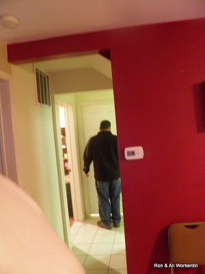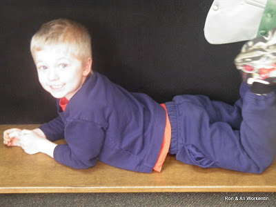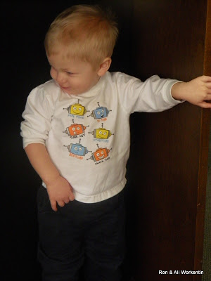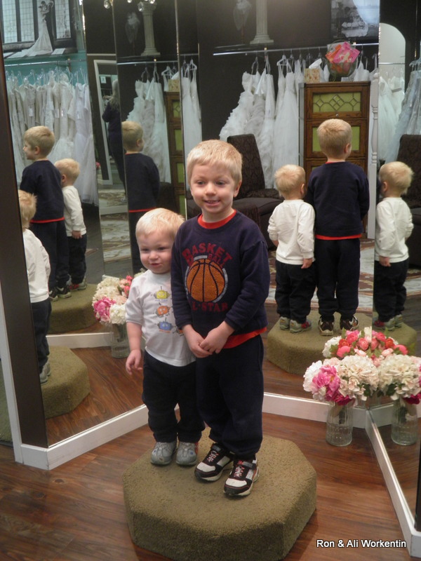 | Christopher finding a place to hide at the Tux Shoppe! |