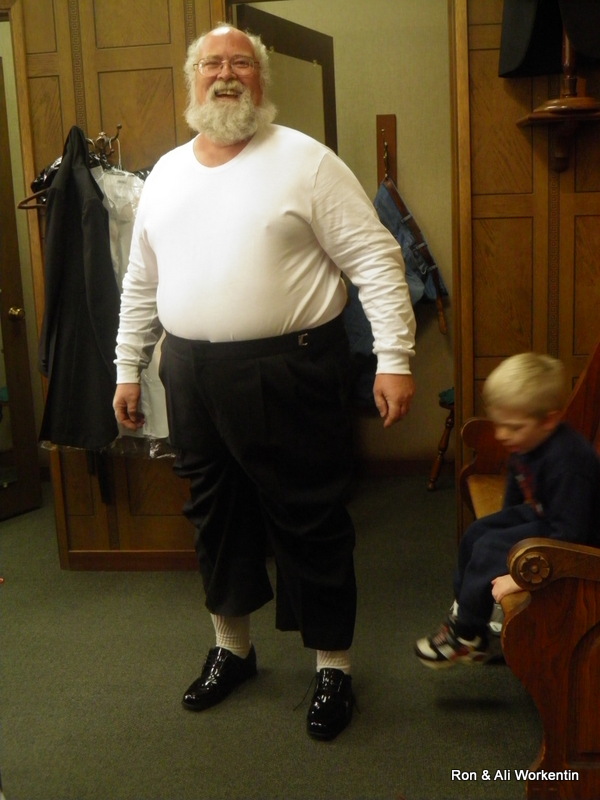 Our day of travel found us leaving Clackamas about 7:30 a.m. and included stops for gas, groceries – needed some coffee, breakfast at Burger King (even though the little boys ate breakfast at home before we left home), a stop to have Grandpa’s tux sized Good thing too – look at those high waters 🙂