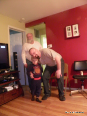 | Christopher checking out Grandpa’s white socks and high water pants! Can’t wait to see him at the wedding 🙂 |