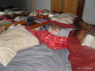 | Treyson & Christopher taking up more of the bed than Grandpa & Grammy. Thanks Brandon & Danalyn for letting us have your bed for a great night’s rest before heading up to Blaine! |