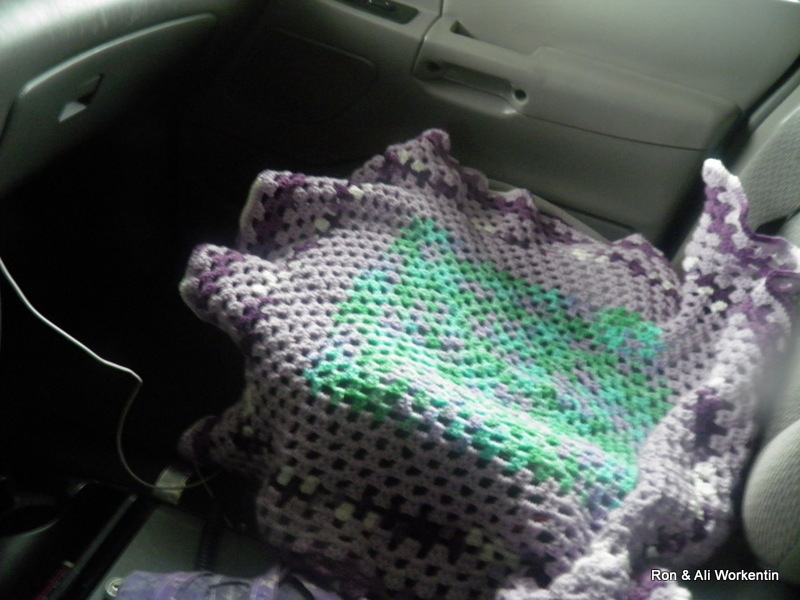 | When I heard she was having a girl it was time to get crocheting…this is not the best picture but the blanket is different shades of purples. Can’t wait to see baby girl wrapped in it. |