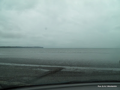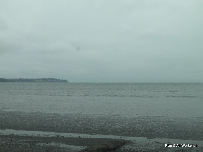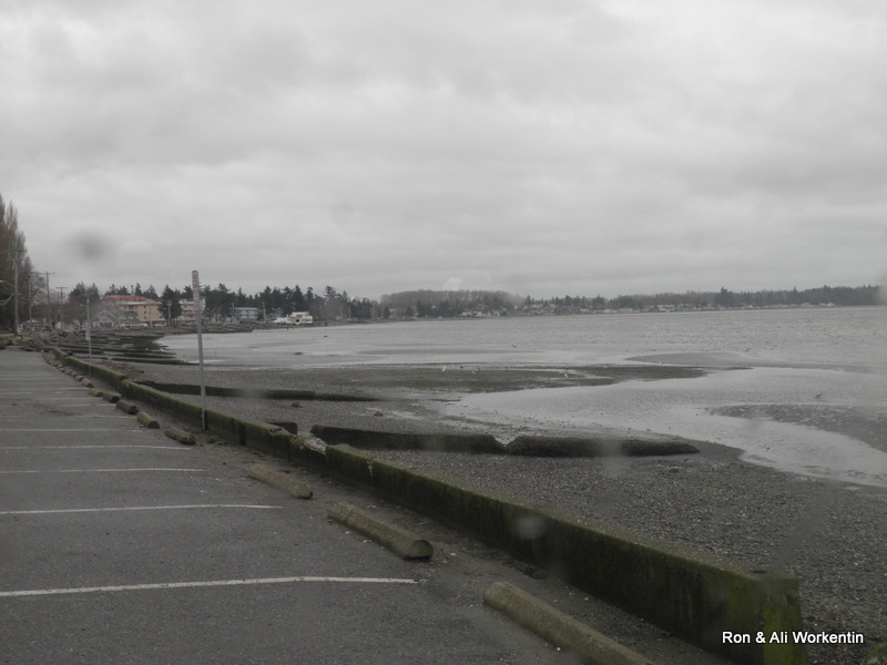 We then headed back to the Lang’s. On our way into Blaine Christopher commented that the bay was flooded (the tide was in) and so after lunch we drove home through the bay again and took a few pictures. Christopher really wanted to walk along the beach but it was cold and rainy so pictures had to do. Sure hope you like them. Once again, Christopher was taking pictures from the back seat of the van.
