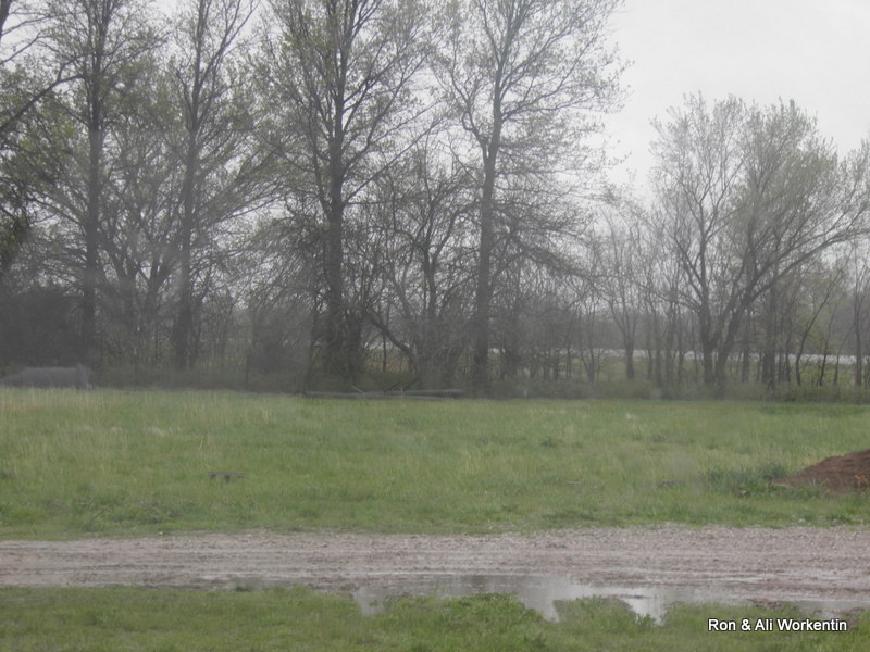 These next two pictures are the view from the recliner looking away from the campground. We are the last rig in this row and so we will have this unobstructed view for the whole season. If you look towards the bottom of the picture you can see lots of water/mud ~ we will be glad when the spring rains stop and this can get all dried up.
