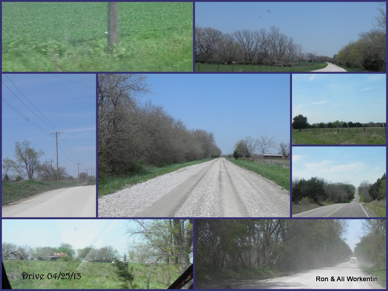 These are pictures of every road we turned on as we drove from Liberty, KS (the actual town we live in) to Parsons, KS. Again, see all the different types of roads. We did have to make one stop and that was the gas station in the center of the picture. Gas was $3.39 a gallon.