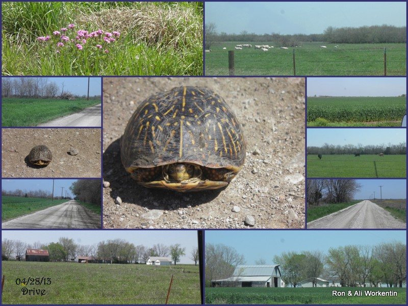 I love all the purple flowers we see along the roads. And Ron just missed hitting the turtle so we had to go back and get a couple of pictures of him. When we turned back around to go the way we wanted he had started to stick his head out a little but we didn’t stop to take another picture. Maybe if I see another one I could make it a pet 🙂