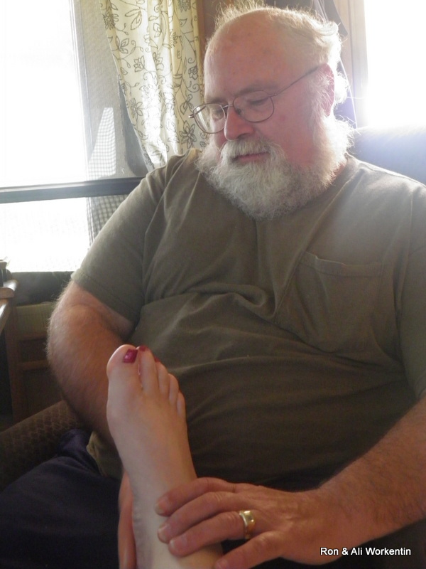 And what could be better to end the day then with a foot massage. I love when Ron massages my feet and puts lots of lotion on them ~ it is just difficult because I am so darn ticklish and so we have to stop every few minutes till I quit laughing. And don’t those toenails look pretty – yep, he also does my nails for me 🙂