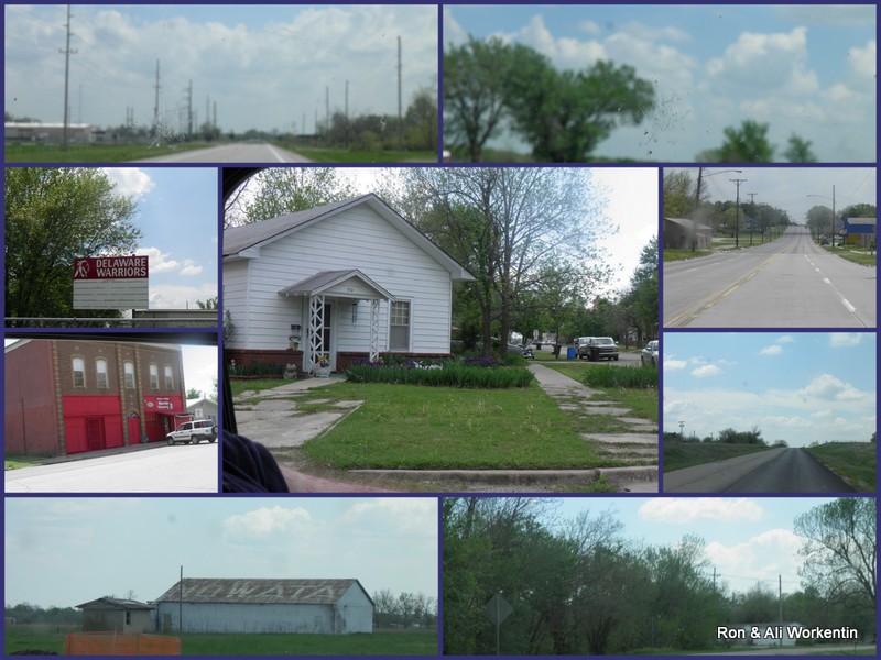 As we continued we came into the town where Will Rogers was born. The 2nd picture down on the right is there town square and this is in the center where all four roads meet. Loved the simplicity of the Methodist church and the street sign.
