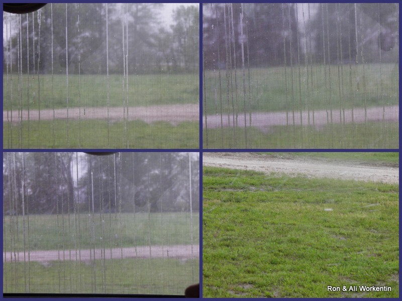 After being home about 45 minutes the skies got dark, the thunder started rolling and the next day we had SNOW, yes snow in May in Kansas!!! We couldn’t believe it. I tried to take pictures through the window of the rig but as you can see they aren’t very clear through the screens. I opened the door at one point to take a picture but the snow is not really showing up.