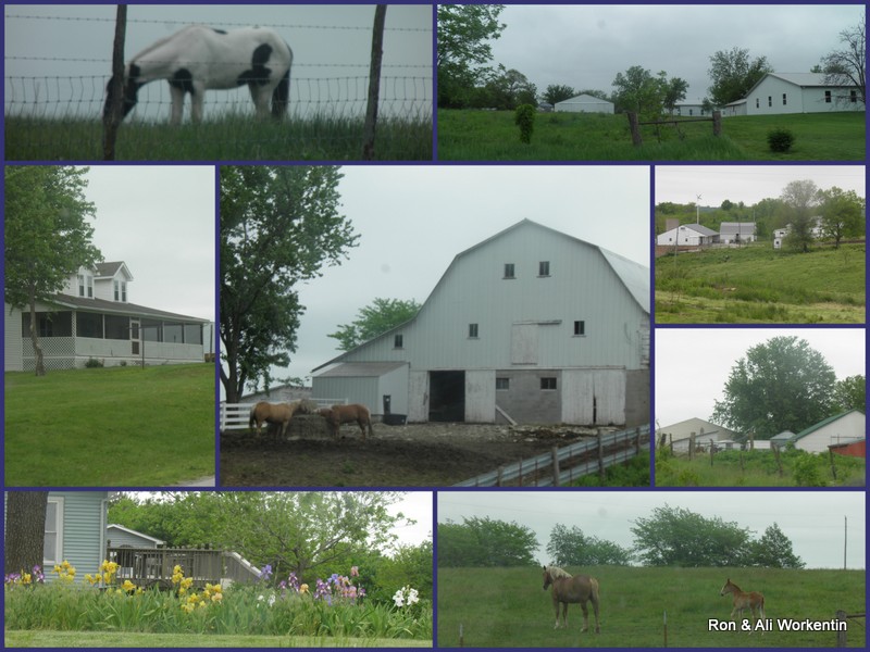 And then we got into the outskirts of the Amish/Mennonite community of Jamesport. Anytime we see a Paint we comment and think about our friends Al & Selma and the story of their little foal that was the paint that ain’t. Aren’t the white barns and houses beautiful along the green of the fields and the blue skies.