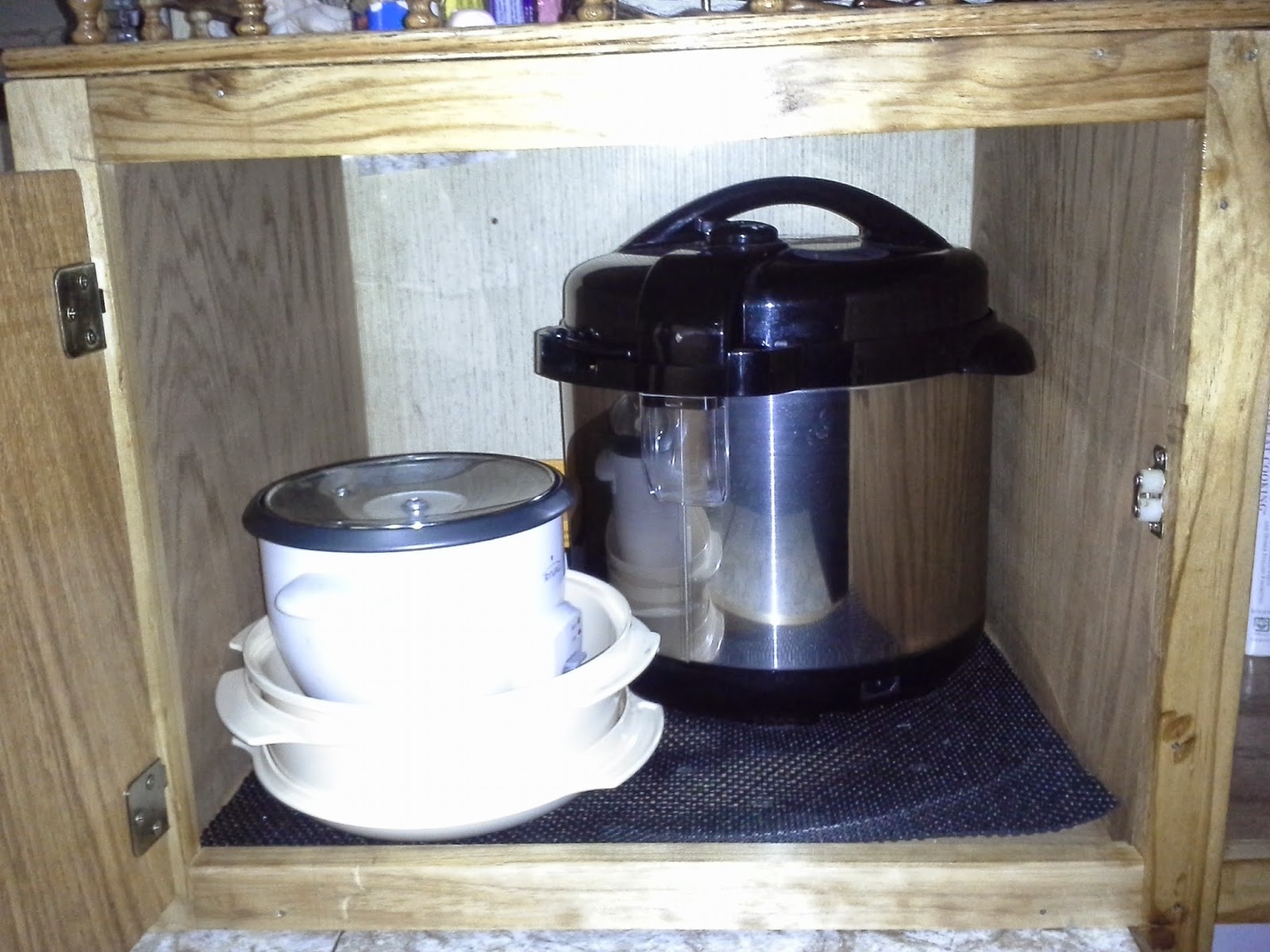 | Yeah, the pressure cooker fits in the cabinet!!! |