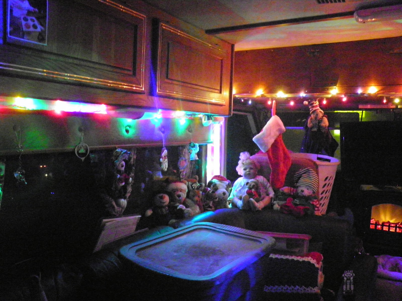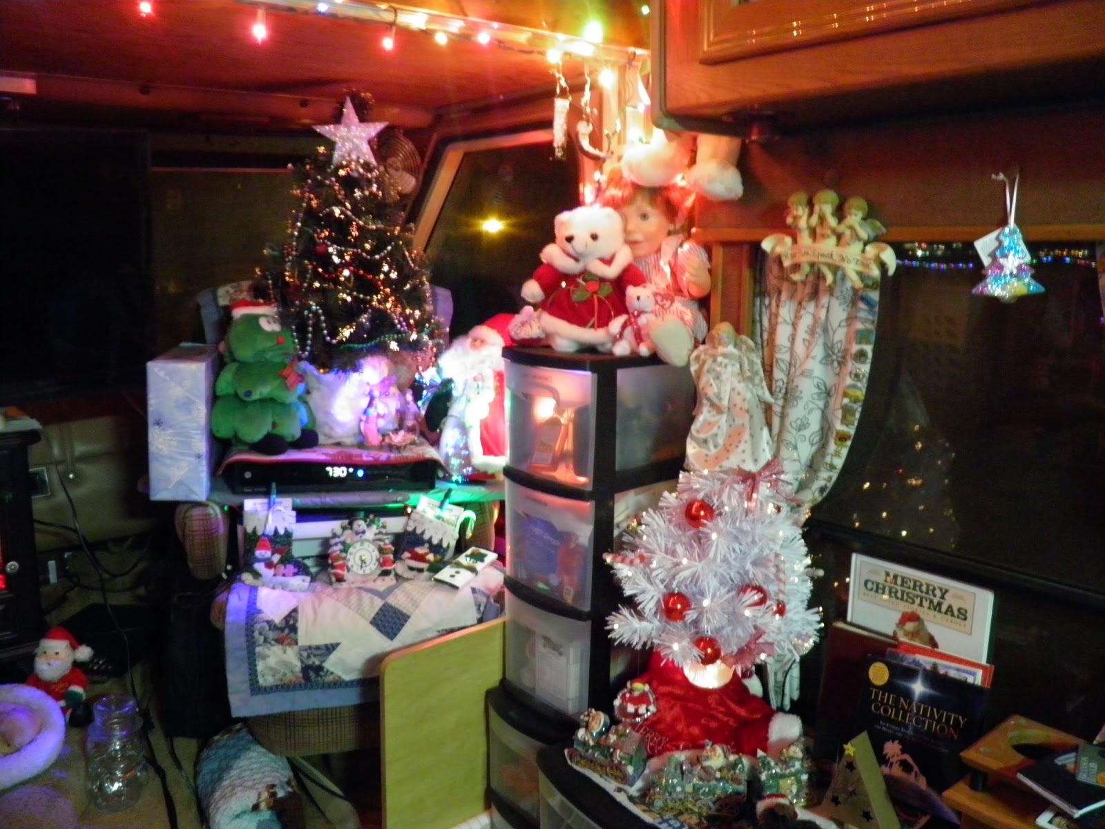 The blue tote is the last of our Christmas decorations. When we moved into the motor home we had 19 totes of Christmas decorations, we took two with us when we hit the road, we are now up to 3 totes full of decorations and one with just lights.