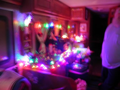 sorry it’s blurry but Ron just finished putting up the colored lights around our new cabinet… it really is pretty