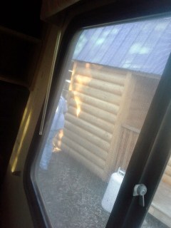out the side window you can see how close the truck got to the cabin
