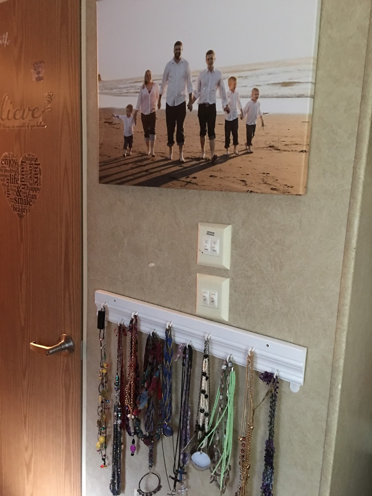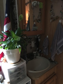 and then you come to half the bathroom ~ yes my necklaces, bracelets and earrings are tagging along for this journey.
