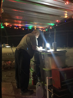 Ron replied “I pick up a clipboard, a few pieces of paper, a pencil and then take about 250 steps, give or take 10 or so, write down what truck has pulled in, filled in some boxes and walk back the 250 steps or so to our little home on wheels.